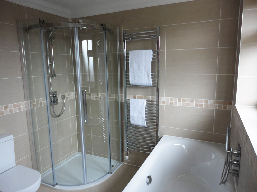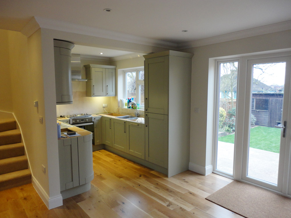 On the first floor the bathroom and separate WC were integrated to make a large family bathroom. An ensuite shower room was also installed off the master bedroom. The drive area was increased to enable 3 cars to park off road and the rear garden was levelled prior to being resold. All works were completed within four months.