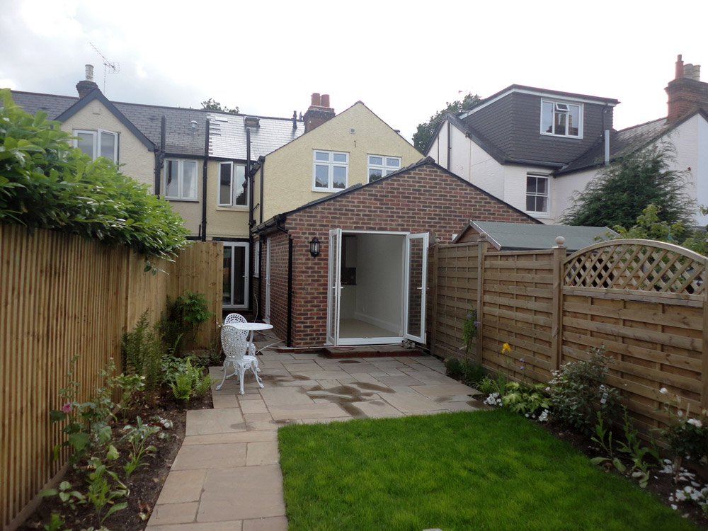 We were then able to rebuild, jointly with the next door neighbours, a rear extension. The property was renovated to a high standard providing two reception rooms, kitchen/dining room, ground floor cloakroom, two bedrooms and two ensuite bathrooms. The gardens were landscaped prior to the house being put on the market. The sale was completed within six months of purchase.